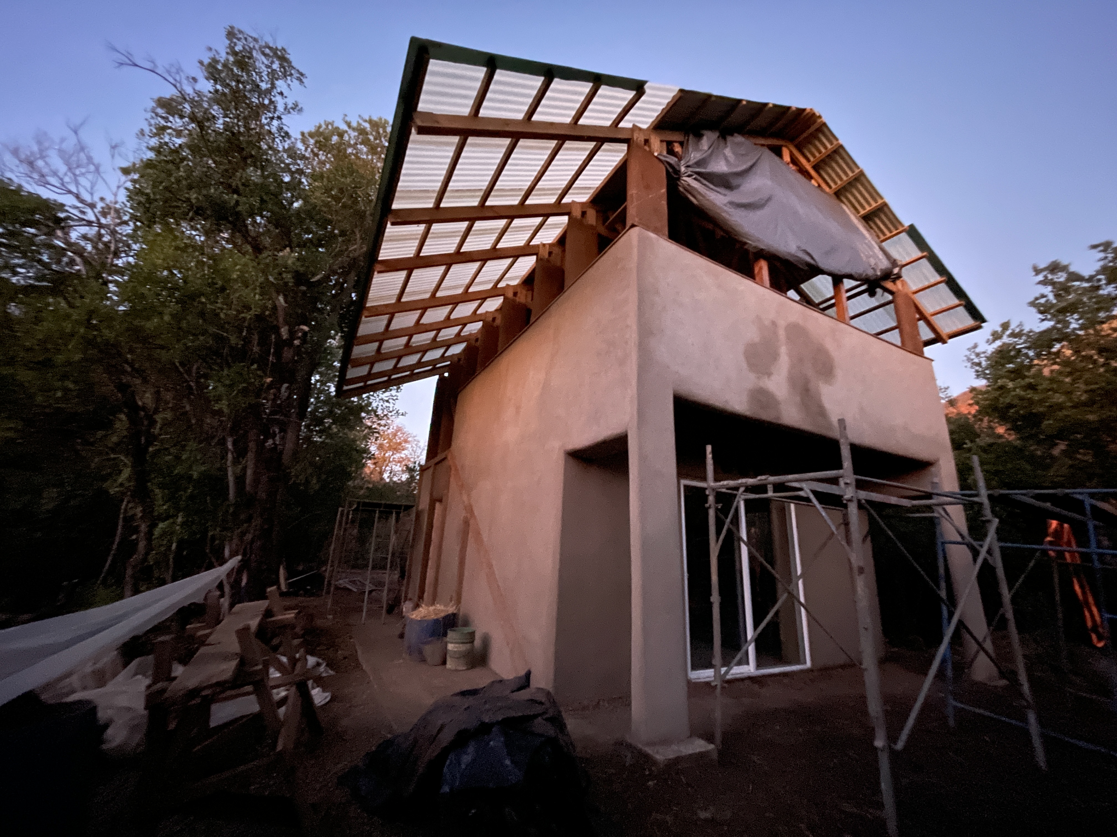 Por otro lado, claro, está la obra en Achibueno, que fue la primera vez que construyo algo que diseño, pero también es una construcción súper especial por el método, el lugar, y porque la estamos haciendo en gran parte a pulso propio y con un presupuesto "limitado". Pasé mucho tiempo en estos meses queriendo que se acabe, que baje Camilo, no tener que subir y bajar tanto, poder descansar un poco. Si bien entiendo por qué me sentía así, ahora veo esa mentalidad como algo un poco triste, porque no permite disfrutar de los procesos, pero creo que ese mismo es el aprendizaje. Todo tiene su tiempo, no sirve de nada apurarlo (como dicen en Colombia: del afán sólo queda el cansancio) y en vez de pensar que lo podré disfrutar cuando termine, hay que parar, dejar de esperar o de presionar, y encontrar el disfrute ahora (especialmente considerando que este proyecto ni siquiera acaba con esta estructura).