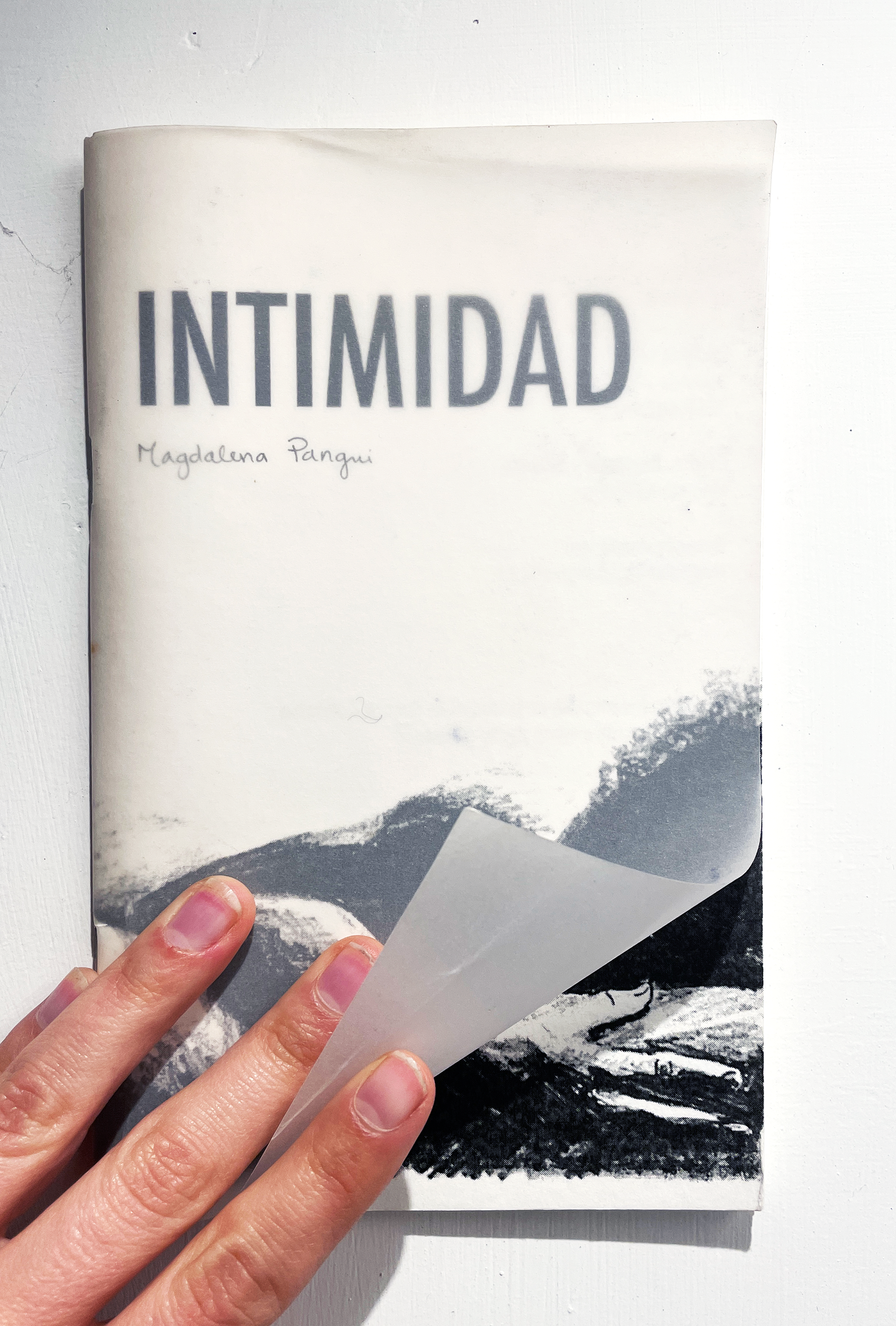The book-object consists of pages printed in 150g paper, wrapped in a semi-translucent paper, bound by hand. There exist 50 copies of this first edition, sold in art-markets (in the times of Pangui Store) and in small bookstores in Bogota, Colombia.