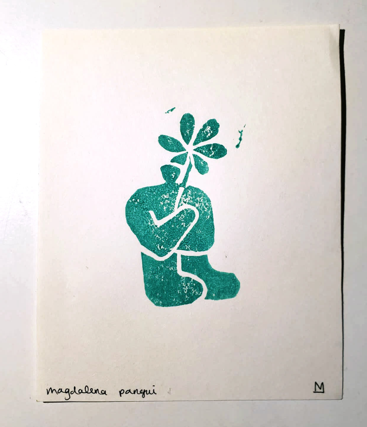 En el año 2020, después de graduarme de la universidad en medio de la pandemia y no encontrar trabajo en arquitectura, me empecé a enfocar en el arte. Pensé que para ganarme la vida en el arte, tendría que vender, tener una tienda. Desde ahí nació Pangui Store (y mi pseudónimo de Magdalena Pangui), que me acompañó sobre todo durante los años en Bogotá hasta el 2022. Allá participé de varias ferias donde vendí grabados, prints, stickers y otros productos, por ejemplo de la línea textil, el Tarot del Trueno, proyectos gráficos de arquitectura y proyectos editoriales incluyendo Incompletable, Intimidad y Septiembre y el Destierro. También estuvieron disponibles en la cafetería de Second Wind, en Norman, Oklahoma - desde donde hacíamos algunos envíos internacionales.