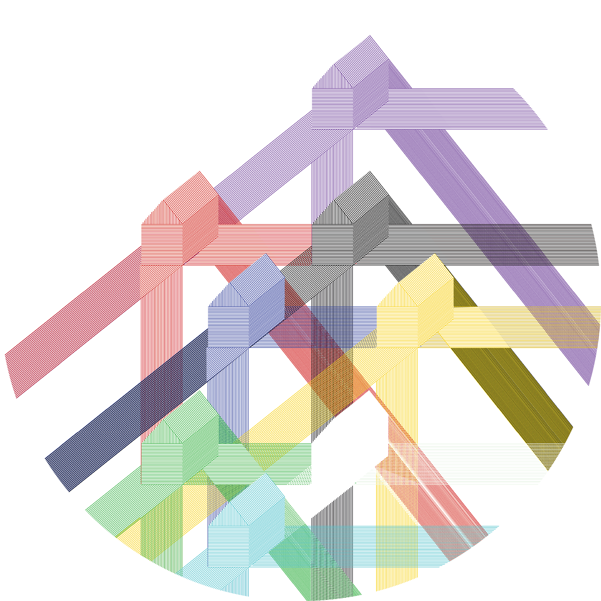 El medio más directo, predilecto en el que trabajo - tal vez por mi entrenamiento en arquitectura - es el dibujo en tiralíneas, a blanco y negro y con distintas texturas.