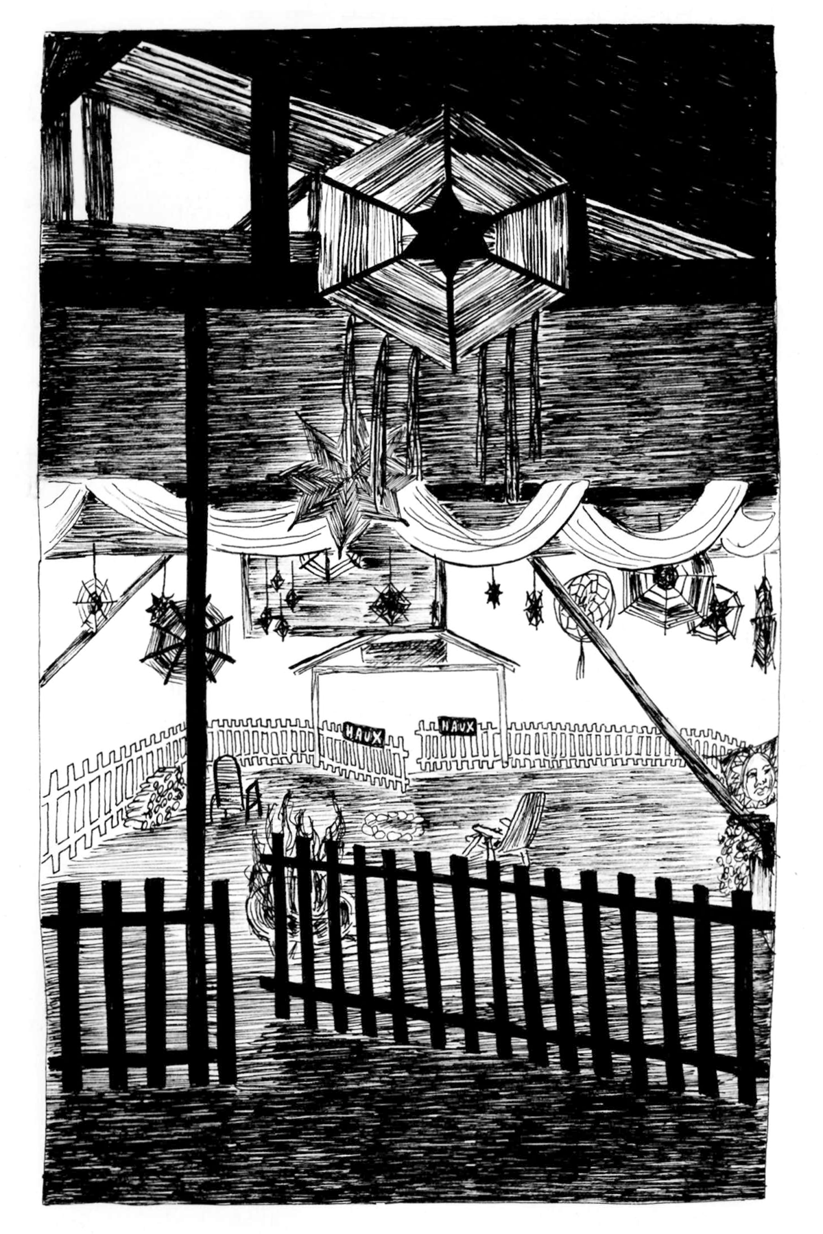 The most direct medium I work with, it is automatic and accessible, and perhaps enhanced by the fact that I studied architecture. Black ink pen drawings, just black and white and texture. That's me.