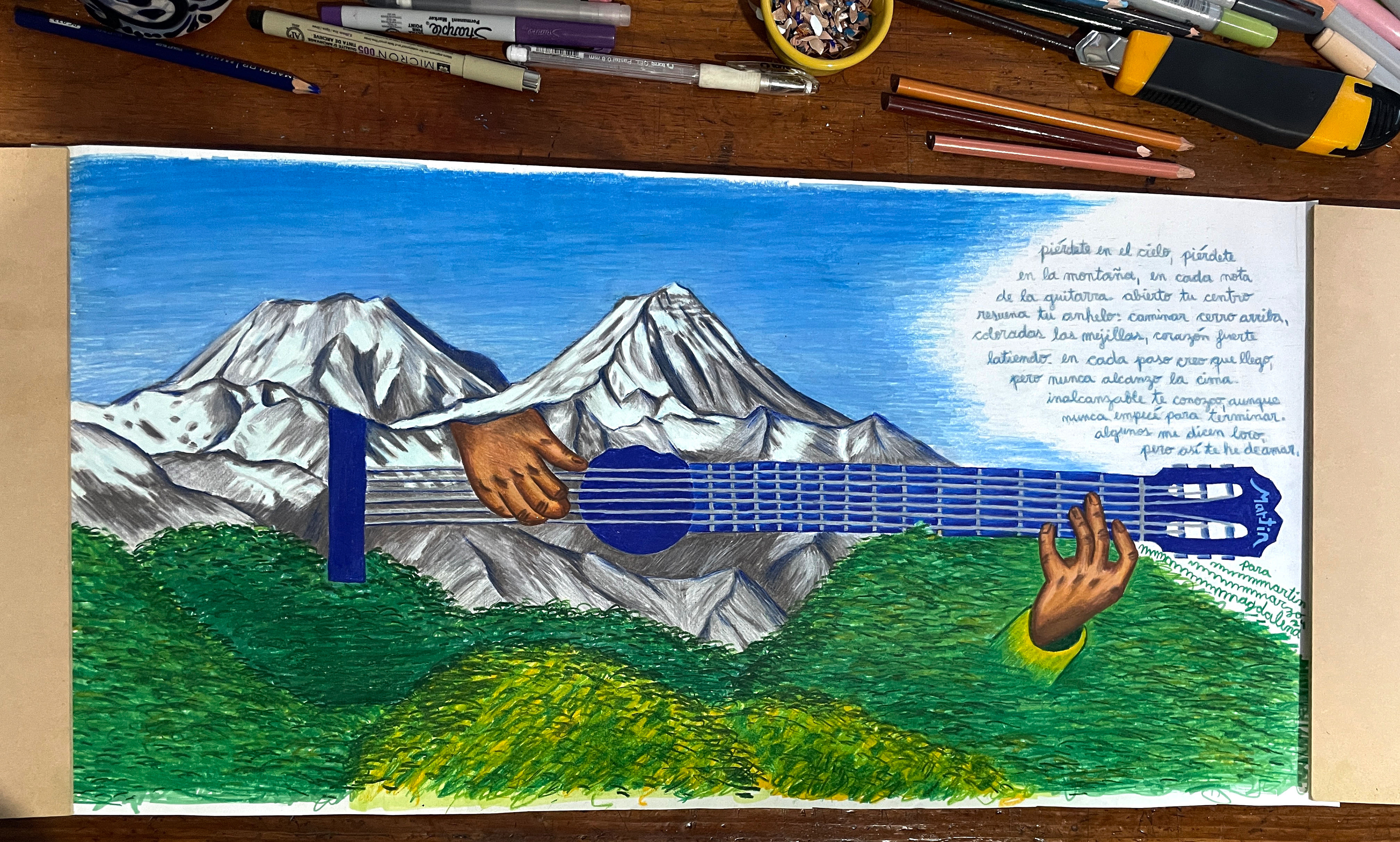 Los colores, a mano a veces son más fáciles por la limitación de la paleta de colores, donde encuentro un poco de libertad. Por otro lado, el CtrlZ del medio digital puede generar dependencia también. También son dos medios que gozo al mezclar: analógico y digital, incluyendo fotografía. Sobre todo para proyectos que tienen más que ver con el diseño gráfico, y también para hacer ensayos antes de pasar al papel.