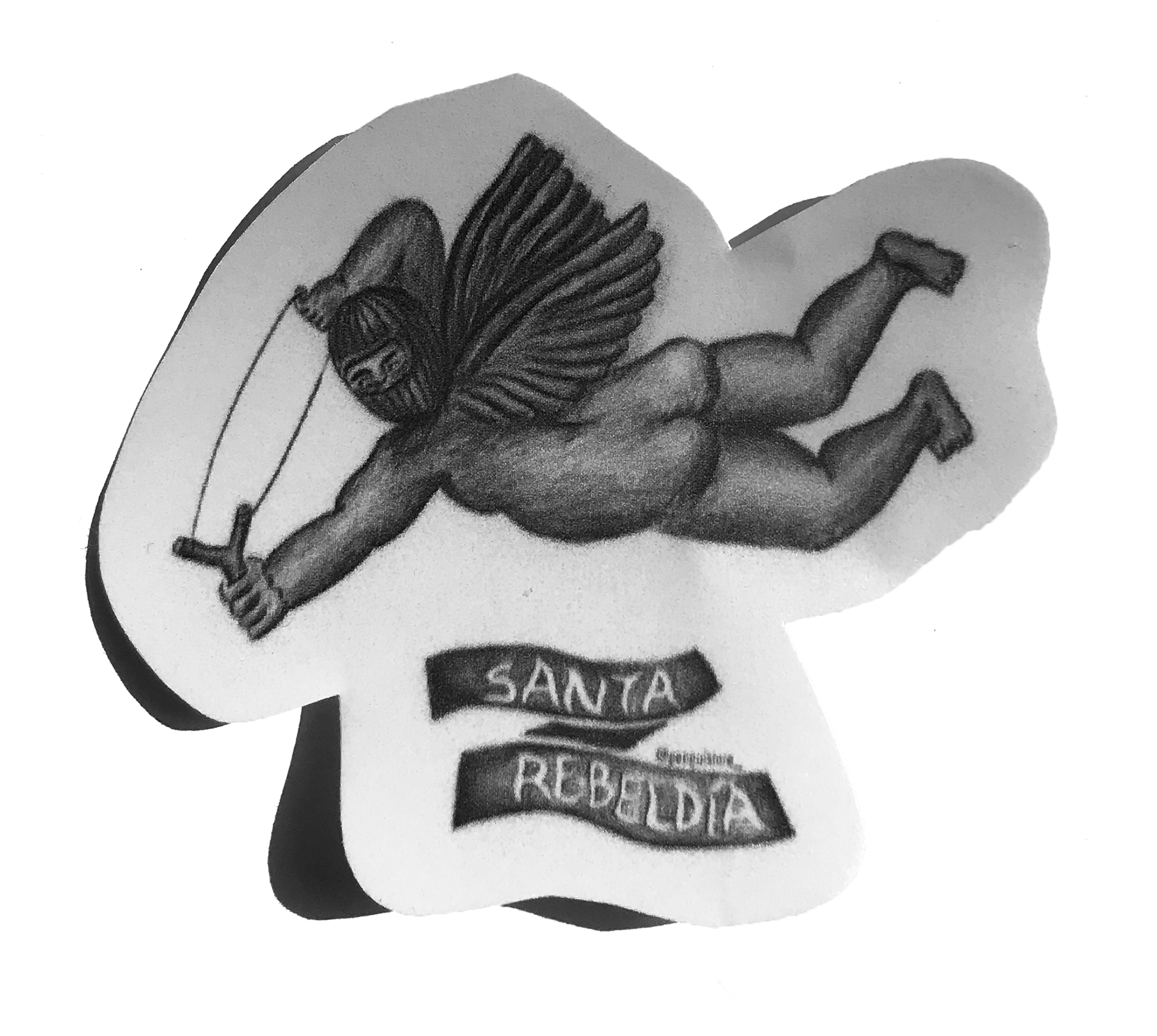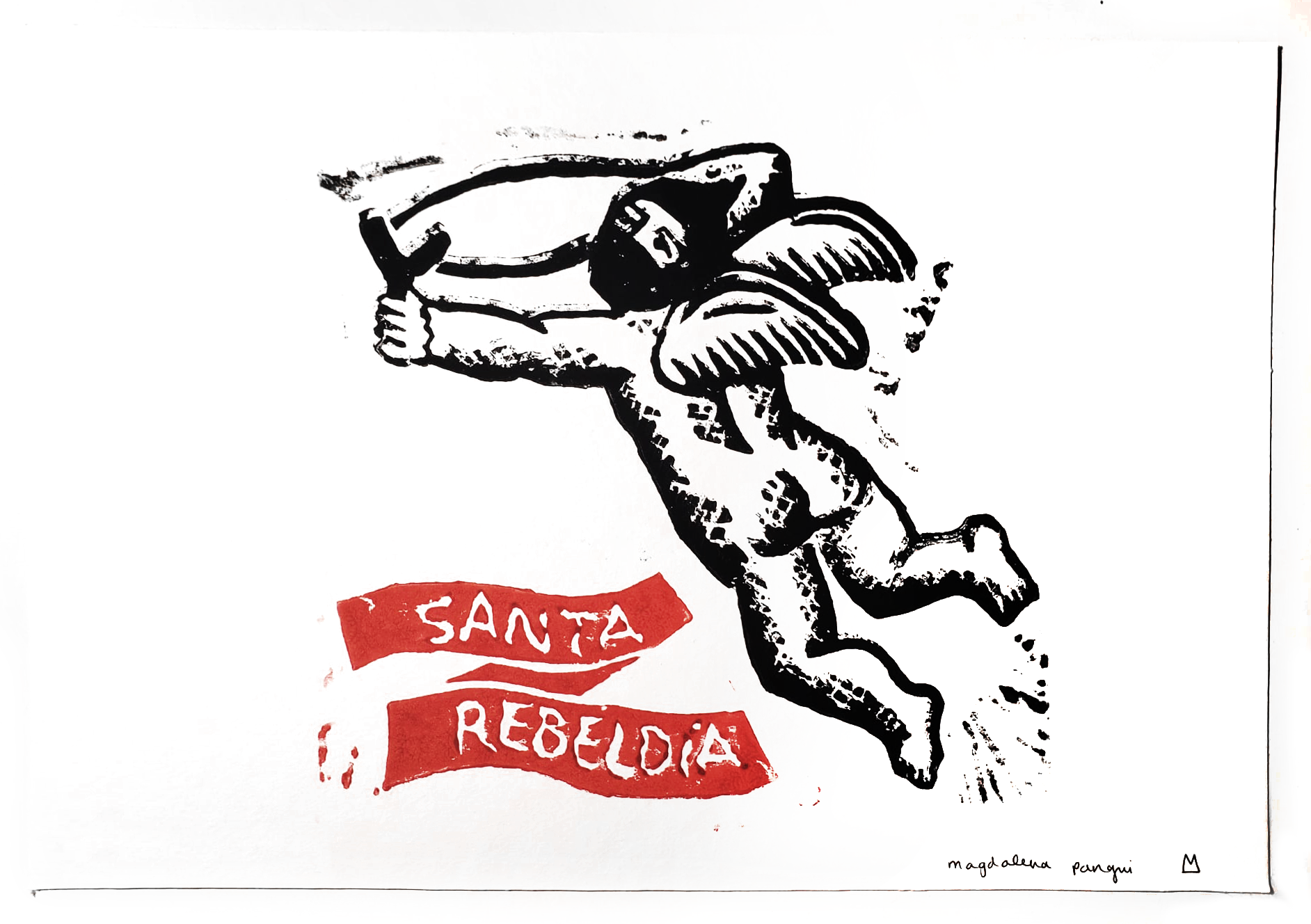 El nacimiento de este proyecto fue un grabado en linóleo de un angel encapuchado que lucha por la justicia social, y está acompañado por el texto “santa rebeldía”. Este lo hice en el año 2020, y desde ahí ha seguido desarrollándose a través del tiempo y de las técnicas.
