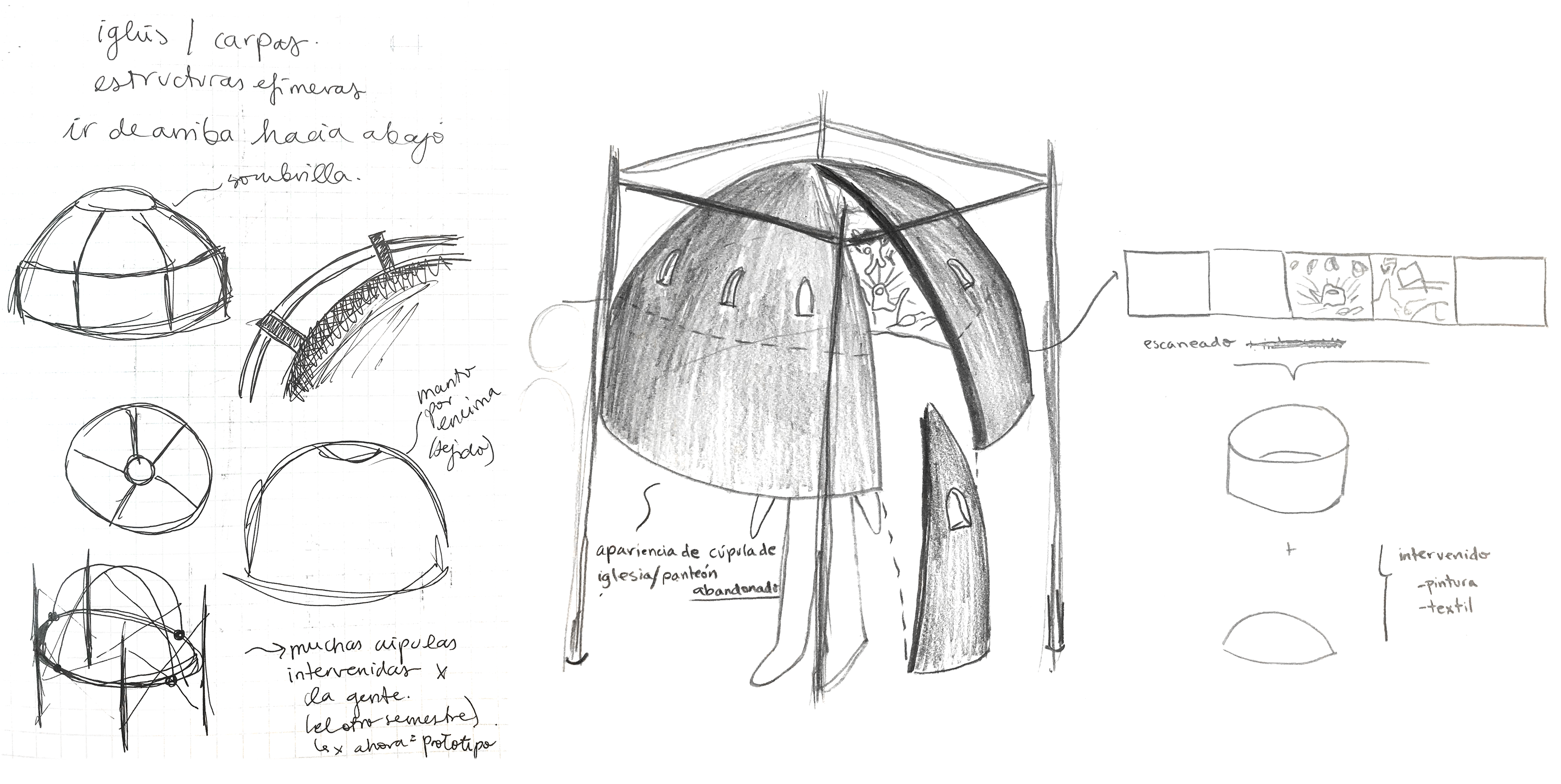 Desde ahí y a través del tramado digital se convirtió en un grabado de serigrafía sobre tela intervenido con bordado. Tomó la forma de una cúpula, como un templo a la calle. Fue expuesta como avance de proyecto de grado en diciembre del 2021 en la universidad.